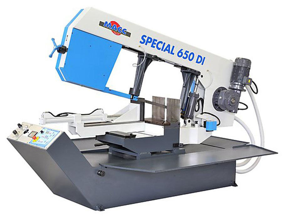Полуавтоматический высококачественный ленточнопильный станок с повышенной жесткостью конструкции для резки крупного металлического профиля, уголка, труб и прутков. Резка производится при помощи бесконечного ленточного полотна, приводящегося в движение электродвигателем. Электрический насос подает смазочно-охлаждающую жидкость в зону реза для достижения максимального ресурса пильного полотна. Вариатор для плавной регулировки скорости входит в комплект поставки. Резка осуществляется в полуавтоматическом режиме - оператор вручную осуществляет зажим заготовки и поднятие пилы, а опускается пила автоматически при помощи гидроцилиндра. Режущая голова станка может поворачиваться не только влево, но и вправо. Гидравлические тиски облегчают работу оператора и позволяют не тратить время на ручной зажим заготовки.